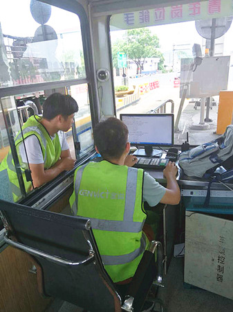 圖為工作人員對天線聯(lián)調測試 8日9日中午1點30左右,正是一天中最熱的時間,天線廠家?guī)еO備來到收費所,中心人員便放棄午休時間和早已在外廣場待命登高車駕駛員一起,協(xié)助廠家技術人員更換離地面6米余高的RSU天線盒。由于天線盒上方沒有安裝任何遮擋設備,長年日曬雨淋導致上方固定螺栓都出現(xiàn)生銹打滑,拆卸難度徒增,不到十分鐘,我們工作人員便濕透了全身,但大家還是咬咬牙,為盡快恢復車道正常行駛,保證車道便捷暢通而繼續(xù)埋頭苦干。在經過近一個小時努力,終于將新的天線盒成功安裝,最后經過聯(lián)調測試,恢復了車輛正常讀卡。 通過對新天線盒“上任”后數天觀察,發(fā)現(xiàn)該ETC車道讀卡失敗率明顯下降,車輛通過率達到了99.7%。如此一來,大大提高了車輛通行效率,距打造“智慧高速”目標又邁進了一步。