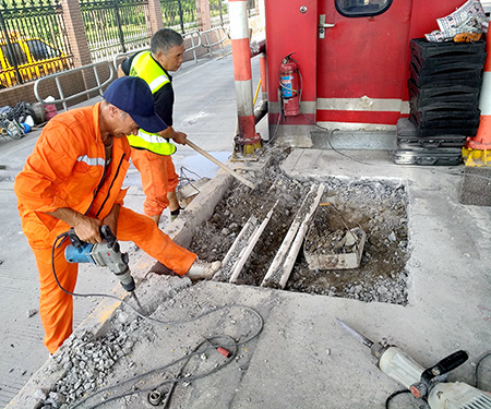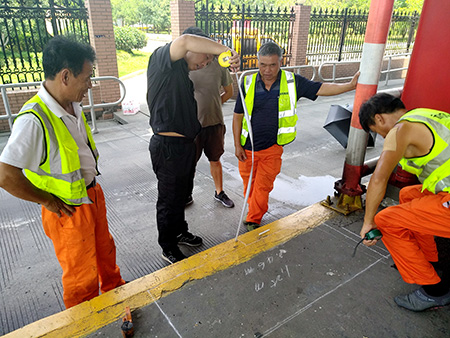 8月8日中午,省機電設(shè)計院施工人員率先對臺州收費所一號車道進行自助發(fā)卡機基礎(chǔ)施工工作。屆時,該所兩個進口車道都將安裝自助發(fā)卡機,整個工期預計需要一個月時間。