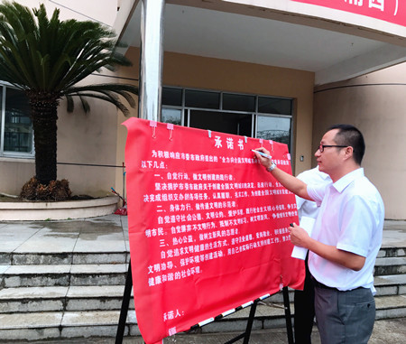 圖為公司副總經(jīng)理章海峰在承諾書上簽名 章海峰要求大家充分認識創(chuàng)建全國文明城市的重要性,立足崗位,樹窗口形象,展行業(yè)新風,用自己的實際行動支持創(chuàng)建工作。此次創(chuàng)建工作,時間緊、任務重,需要全體人員迅速行動起來,從我做起,從細節(jié)做起,從點滴做起,逐層壓實責任,確保萬無一失。文明城市創(chuàng)建工作不僅僅是政府的事,更是全體市民的事,也直接體現(xiàn)了一個城市的幸福指數(shù),大家要以“一流的城市環(huán)境、一流的公共秩序,一流的服務水平、一流的精神面貌”迎接測評。