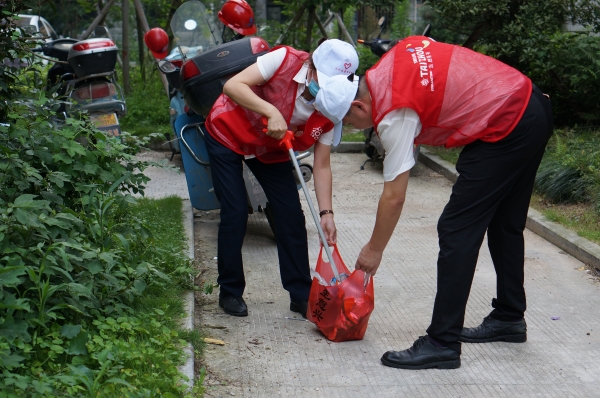下午2時,該所一行6人在所長王小勇的帶領(lǐng)下抵達九峰社區(qū),在社區(qū)負責人的介紹中了解了社區(qū)的基本情況,并開展環(huán)境衛(wèi)生清理工作。志愿者們身著志愿紅背心,一手拿垃圾夾一手提垃圾袋,在社區(qū)道路、綠化帶里認真撿拾垃圾和煙頭。社區(qū)工作人員與志愿者們親切攀談,天氣雖然悶熱,但大家的熱情絲毫不減。活動結(jié)束時,雙方探討了結(jié)對共建聯(lián)絡(luò)機制,以確保共建活動常態(tài)化開展。