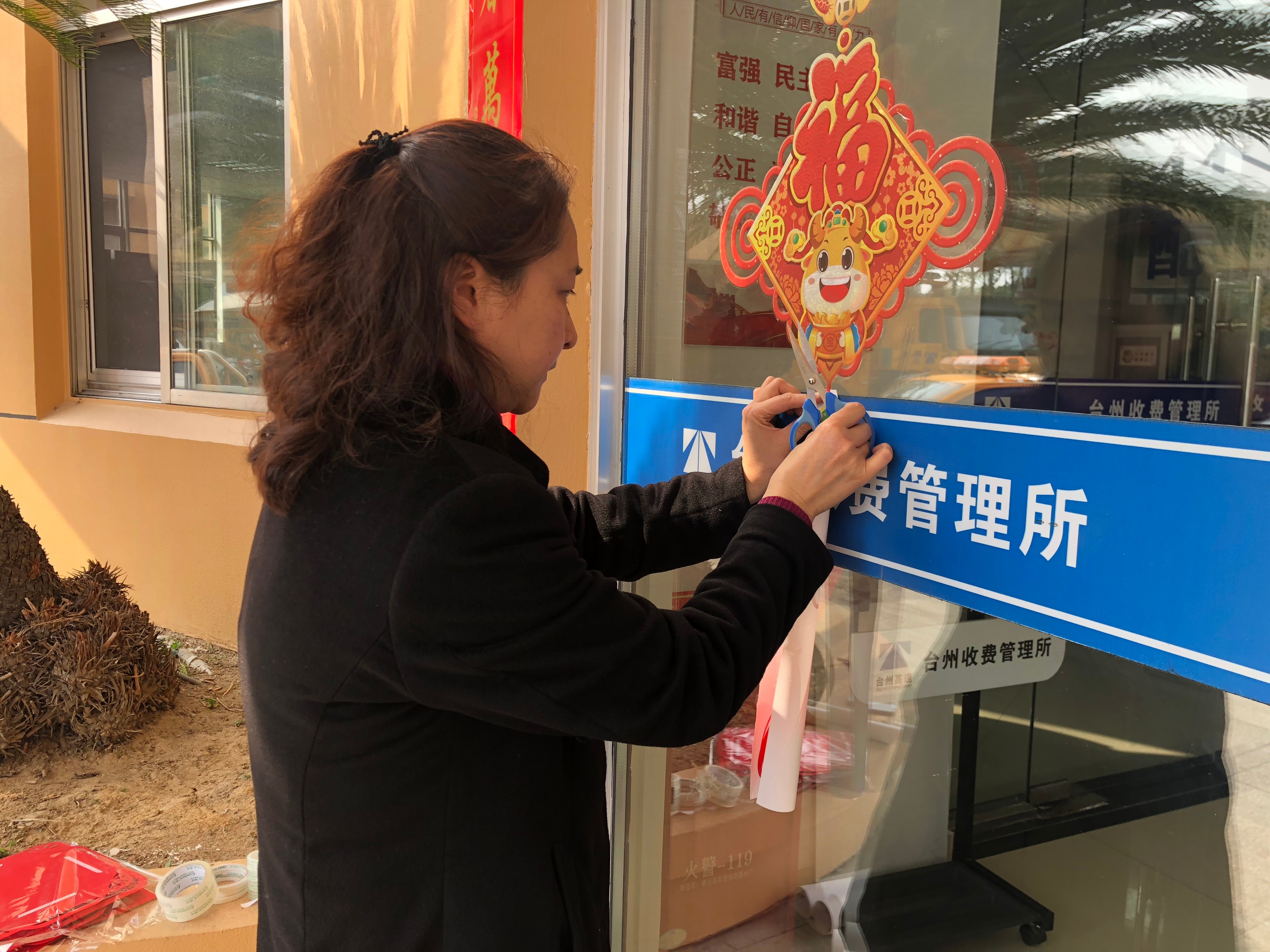感受年味,喜迎新春 2月7日,臺(tái)州收費(fèi)所員工給站所添點(diǎn)“味兒”。大家分工合作掛燈籠、貼對(duì)聯(lián)、貼窗花、插彩旗……一盞盞大紅燈籠高高掛起,一幅幅新春對(duì)聯(lián)溫暖門(mén)房,一張張精致窗花鑲嵌窗上,一面面五彩旗幟舞動(dòng)廣場(chǎng),整個(gè)收費(fèi)所充滿了新年的味道,溫馨祥和。