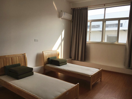 圖為員工寢室內(nèi)景 此次改造,將原先連接食堂和副站生活區(qū)域的鋼棚拆除,新砌成儲(chǔ)物間,并對食堂的布局也進(jìn)行了重新調(diào)整,將洗碗槽由室內(nèi)移到室外,增加用餐場所的面積,改造后的食堂可容納30多人同時(shí)用餐。新食堂內(nèi)還更換了老舊的碗柜、桌、椅等用具,碗柜統(tǒng)一采用消毒柜。廚房內(nèi)部被劃分成切配、烹飪、清洗等功能區(qū),下水道蓋一致?lián)Q成不銹鋼的,倉庫、空調(diào)、消毒碗柜等區(qū)域及電源插座等都作了加高處理,避免每年汛期時(shí)進(jìn)水使食物受潮霉變,消除插座因進(jìn)水而漏電的安全隱患。 這次施工不但對食堂進(jìn)行了改造,而且利用框架在食堂上方再建了一層,增加了五間員工寢室和一間活動(dòng)室,不僅緩解了住宿擁擠的難題,也讓住所里的員工有娛可樂。 “希望就餐和住宿環(huán)境改善后,我們的員工吃住舒心,安心上班。”所長王益民說。 夏蓮萍