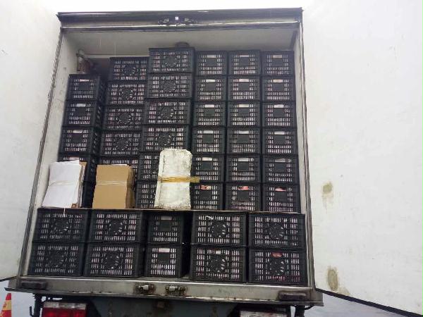 早上10點(diǎn)40分左右,這輛運(yùn)蘋(píng)果的貨車(chē)駛?cè)胧召M(fèi)站的一號(hào)崗?fù)ぃ緳C(jī)師傅說(shuō)自己運(yùn)的是蘋(píng)果,根據(jù)公司規(guī)定,綠農(nóng)車(chē)檢查必須開(kāi)車(chē)門(mén)檢查貨物。憑著多年的檢查經(jīng)驗(yàn),當(dāng)班班長(zhǎng)童軍偉發(fā)現(xiàn)這輛綠農(nóng)車(chē)有問(wèn)題,覺(jué)得重量遠(yuǎn)遠(yuǎn)不夠,可能不符合“綠農(nóng)”免費(fèi)政策。果不其然,車(chē)廂中“深藏玄機(jī)”,左右兩側(cè)各有一排玻璃鋼魚(yú)箱,這就給檢查增加了難度。當(dāng)班班長(zhǎng)要求司機(jī)師傅把最后兩排箱子拿掉,想檢查玻璃魚(yú)缸,然而這個(gè)司機(jī)極其不配合,還惡意刁難工作人員,說(shuō)什么也不搬蘋(píng)果。