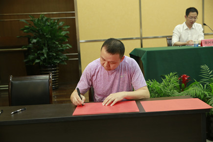 圖為公司黨委副書記、總經理張建平與部門(子公司)負責人簽訂《黨風廉政建設責任書》
