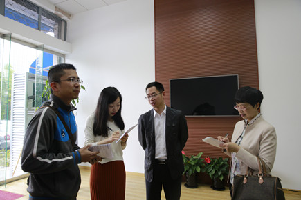 圖為公司副總經(jīng)理董阿林與市“同創(chuàng)辦”人員在文鼎苑銷售中心檢查
