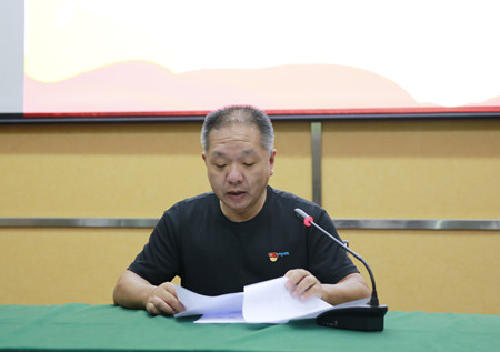 圖為公司監察室負責人傳達文件精神