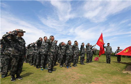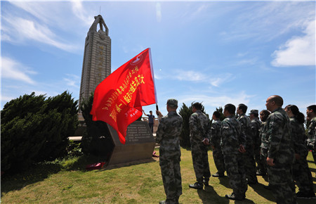 圖為黨員參觀大陳島墾荒紀念館 “讓我們重溫入黨誓詞,牢記黨員使命。”當(dāng)鮮紅的黨旗在墾荒紀念碑下鋪開的時候,大家的思緒拉回現(xiàn)實。激情燃燒的歲月是歷史,從歷史中汲取力量,不忘初心,弘揚和傳承艱苦創(chuàng)業(yè)精神,鍥而不舍地克服集團發(fā)展中的難關(guān)難題,才是此行活動真正的意義所在。“我志愿加入中國共產(chǎn)黨......”面向黨旗,大家齊齊舉起右手,跟隨集團黨委委員陳保衛(wèi)一起大聲宣誓,墾荒碑下回聲嘹亮,一句句錚錚誓言體現(xiàn)出黨員干部無比堅定的信念。