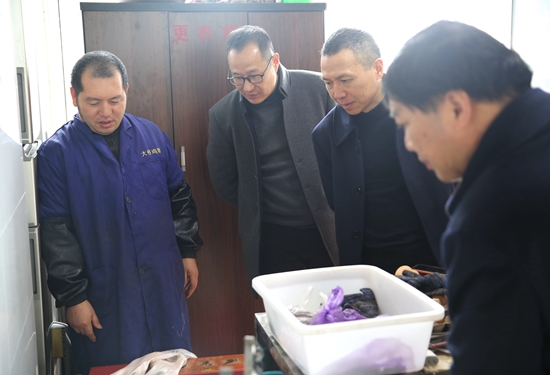 圖為集團總經理張建平檢查收費所食堂 期間,張建平一行還實地踏勘了院橋服務區(停車區)選址情況。 張波