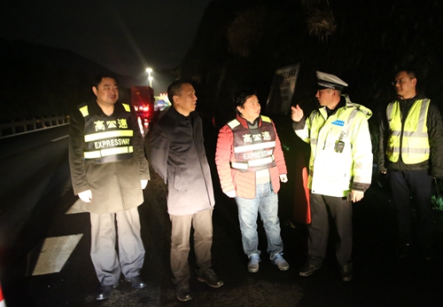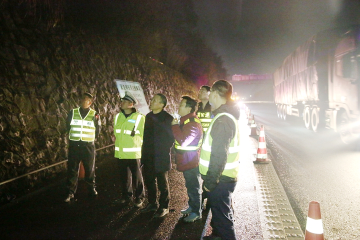 張建平與高速交警、施工單位等相關(guān)人員仔細(xì)勘踏險情現(xiàn)場,連夜會商制定解決高邊坡落石臺上的巨石方案。由于深夜天黑,高邊坡坡度較高,沒有直接供人上坡的道路,夜間施工存在較大困難且易造成人身危險,只能安排人員緊盯現(xiàn)場通宵觀察情況,隨時匯報險情進展,等天一亮立即清理二級平臺上的大落石。張建平特別叮囑相關(guān)部門負(fù)責(zé)人,近期雨水還將持續(xù)一段時間,容易造成塌方等自然災(zāi)害的發(fā)生,一定要組織人員再次對高速全線高邊坡開展隱患大排查。