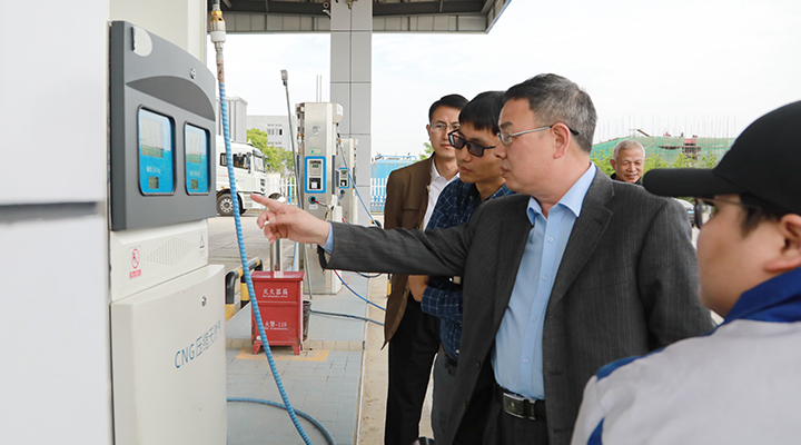圖為公司領導陳文波在臺州市浙能油氣發展有限公司公交綜合站加氣(加油)站調研 “公交車、出租車一次可以加多少公斤?加足一次可以開多少公里?”在臺州市浙能油氣發展有限公司公交綜合站加氣(加油)站,陳文波詳細詢問站內工作人員,當得知公交車一次可加100公斤、出租車一次能加10多公斤并能開200多公里時,陳文波表示了贊許。該加氣(加油)站目前日均加氣量約9噸,從2018年7月2日至今10個月的運營,共為100多輛LNG公交車和500多輛CNG出租車提供加氣服務。陳文波指出,加氣站要借浙江省民生工程中增加綠色能源公交車的政策東風,積極開發拓寬天然氣用戶,努力提升銷售量。