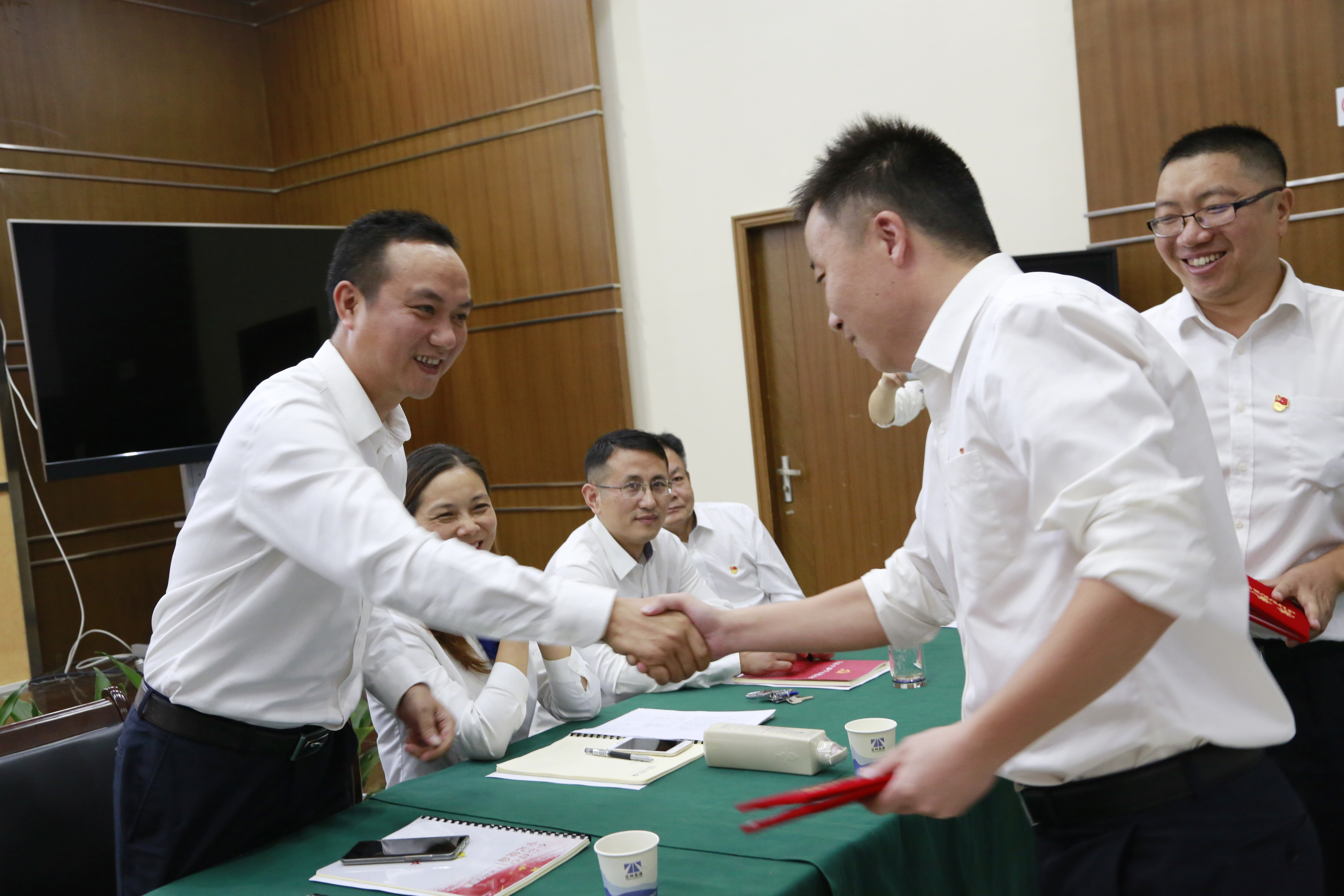 “我和我的祖國,一刻也不能分割......”搶答環(huán)節(jié)中,回答錯(cuò)誤的支部齊齊起立,表演了一段經(jīng)典紅歌。在輕松的氛圍中走進(jìn)黨章黨規(guī)、十九大精神知識(shí),深入學(xué)習(xí)習(xí)近平新時(shí)代中國特色社會(huì)主義思想,既有“意義”又有“意思”,既有“氛圍”又有“格調(diào)”。