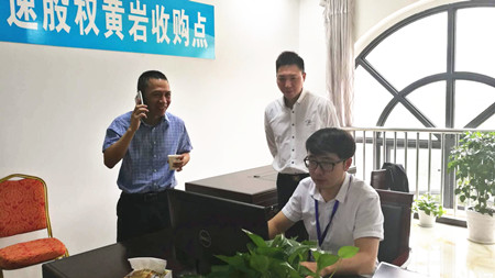 圖為集團副董事長、總經理張建平在黃巖收購點檢查 他還向工作人員了解了節日期間的股權收購情況 ,目前工作中存在的困難和問題。當得知黃巖收購點股東名單里還有他的老同事和老朋友時,他連忙拿起手機,一一聯系動員。當天下午就有人到收購點轉讓了手中的股份。