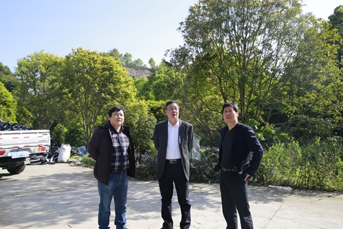 圖為公司領(lǐng)導(dǎo)陳文波在岙林村考察停車區(qū)地塊