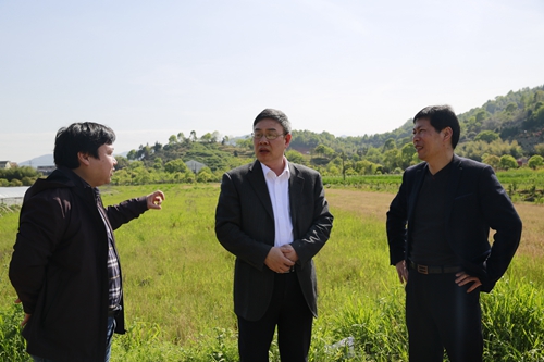 圖為公司領(lǐng)導(dǎo)陳文波在水花村考察停車區(qū)地塊