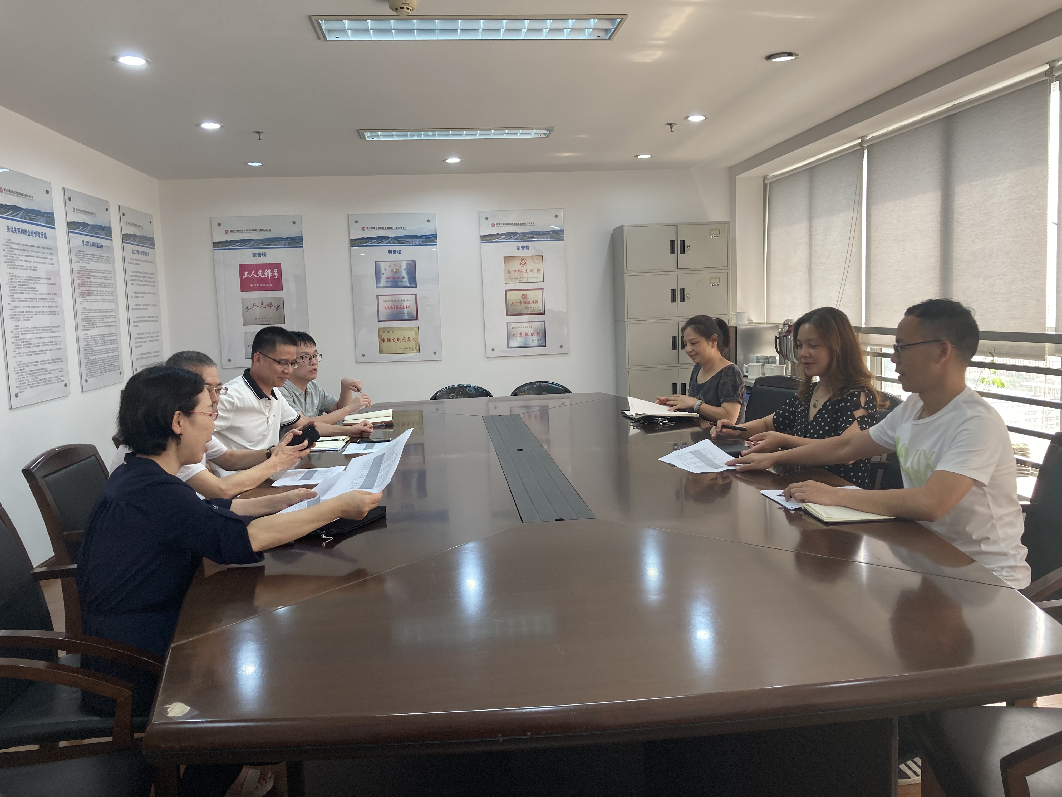 市國資委一行到公司進行工作交流 8月10日上午,臺州市國資委產(chǎn)權(quán)管理處處長胡斌帶領(lǐng)臺州市國有資本運營集團相關(guān)人員就債券發(fā)行事宜到公司進行交流。公司總會計師章彩霞以及結(jié)算中心有關(guān)人員參加現(xiàn)場交流。