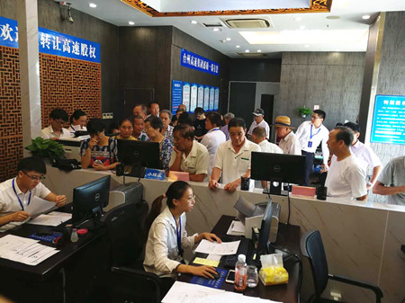 圖為路橋收購點股東辦理股權(quán)轉(zhuǎn)讓現(xiàn)場