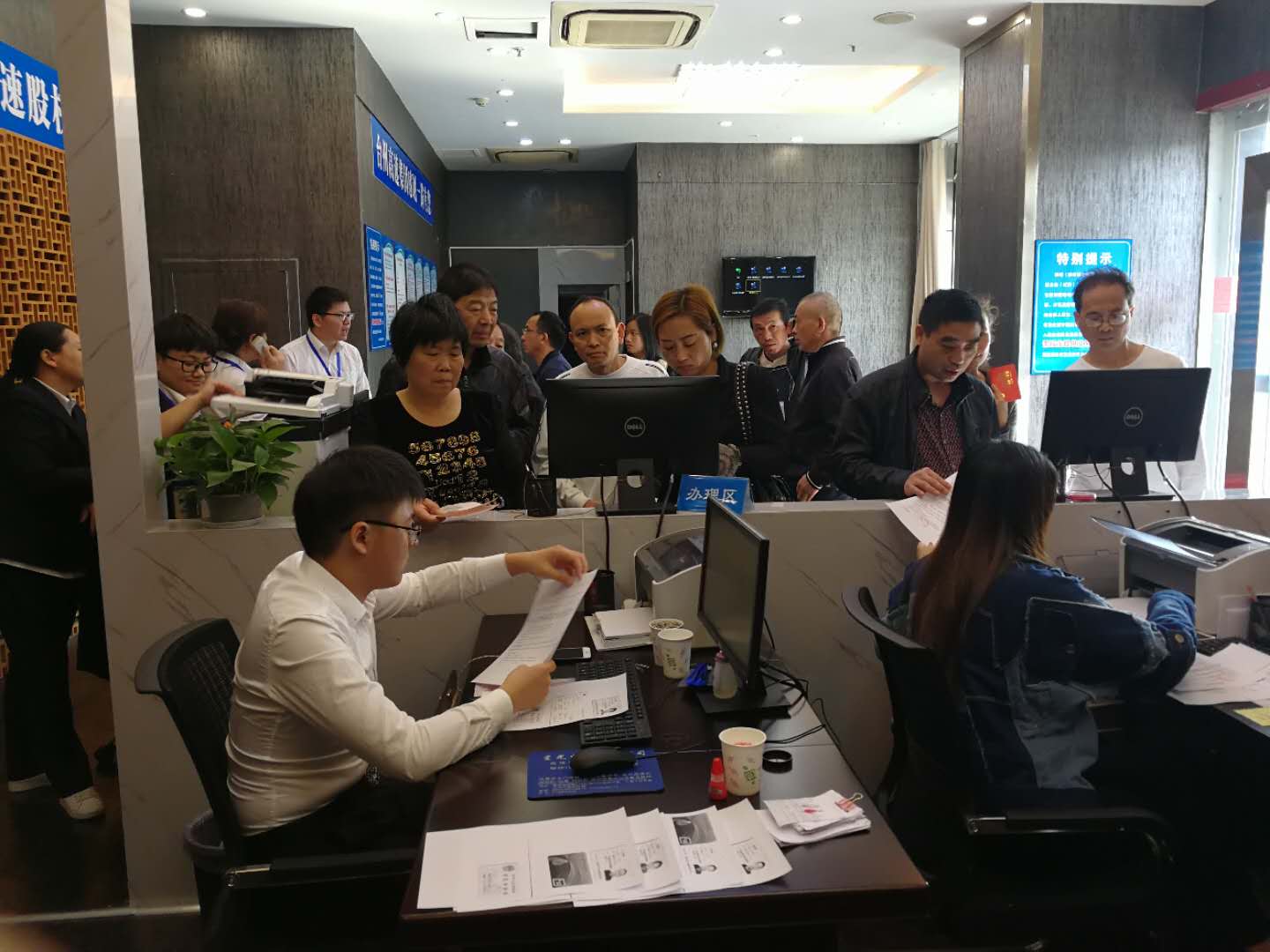 圖為溫嶺收購點負責人向股民講解收購事宜 10月26日上午11時許,水利局陳慧女士為自己辦理股權轉讓的同時,還帶來6位她的同事的業務,把資料帶得很齊全,一個個分得清清楚楚。 當工作人員感謝她這么熱心的幫忙時,她說這些是之前的同事的,他們現已調離水利局工作。過些天,她還會前來為現在的同事辦理代辦轉讓業務。 無獨有偶,溫嶺國稅局辦公室主任黃榮軍,自9月8日股權收購開始以來,積極響應號召,每次溫嶺收購點工作人員朋友圈轉發的有關股權轉讓的信息他都會積極轉發,不僅自己主動帶頭轉讓,還動員身邊持股的工作人員和親戚朋友早日轉讓高速股權,儼然成了溫嶺收購點的???,前后為單位同事辦理手續達4次之多,共辦理90多筆約5萬股轉讓業務。 我們為黃榮軍、陳慧這樣熱心股民點贊,感謝他們對股權收購工作的支持! 顏優芬