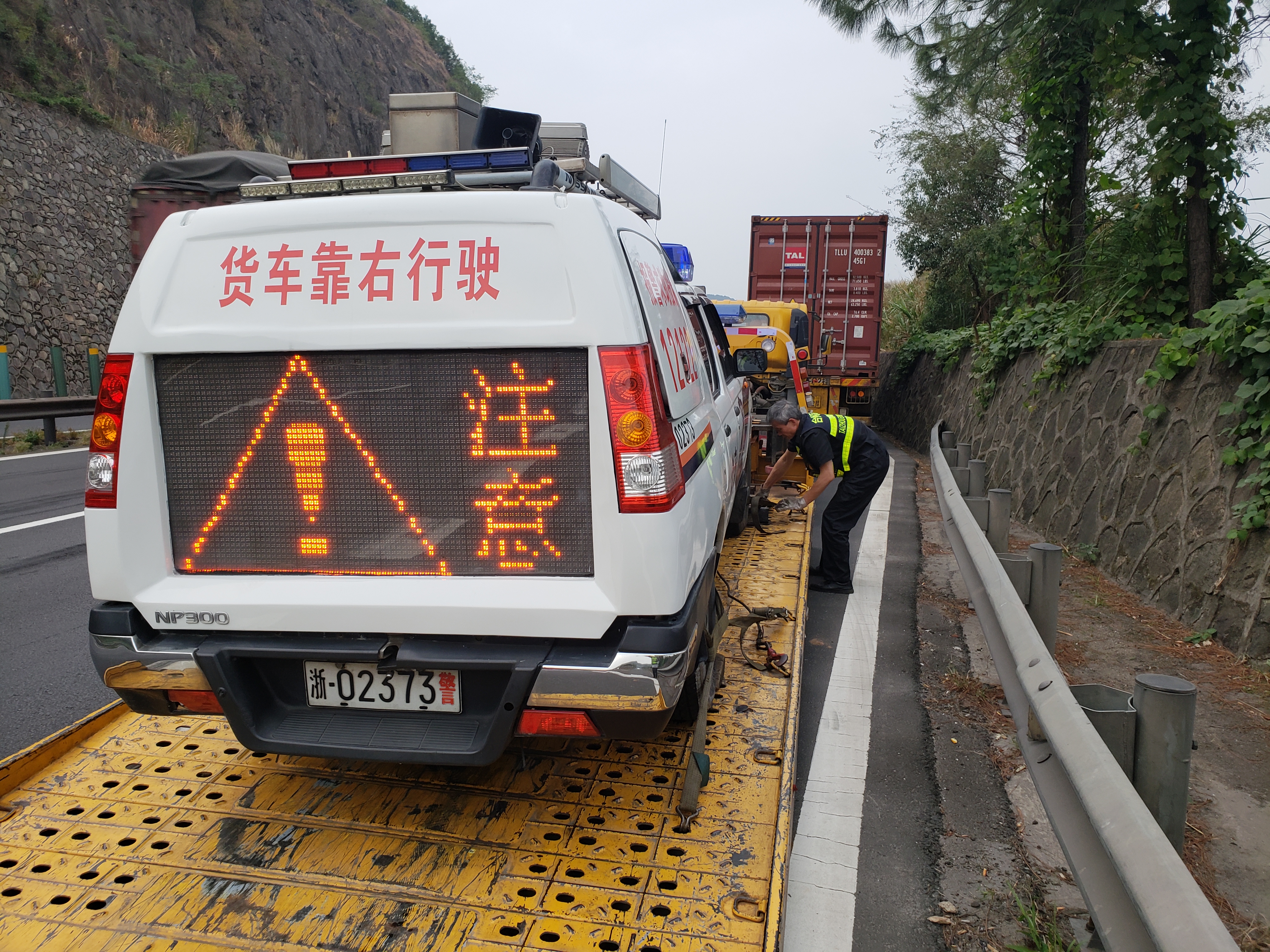 25日上午10點(diǎn),兩人在處理一輛沒有年檢已經(jīng)達(dá)到報(bào)廢標(biāo)準(zhǔn)的小面包車時(shí),接到指揮中心報(bào)警,一輛奧迪小轎車拋錨在臺州收費(fèi)站往臺州南方向出匝道位置的超車道上,需要救援。