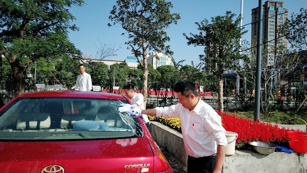 黨員服務(wù)群眾免費洗車 “等下車鑰匙拿給黨員同志,他們幫你免費洗車。”收費員張裴裴一上班就碰到這等好事。 11月6日上午,溫嶺西收費所黨支部組織黨員在所內(nèi)開展了免費義務(wù)洗車活動,一個上午共清洗10多輛汽車,受到群眾員工的好評。