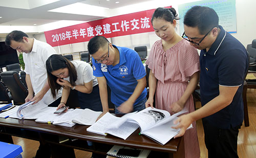 圖為交流會現場 針對支部之間黨建工作發展的各有所長,現場開通辦公軟件釘釘黨建交流群,交流材料互學,優秀經驗共享,有效搭建了各支部之間資源共享的平臺。同時,各支部在會議現場展示了半年來的黨建臺帳。與會人員現場互相參觀學習,互相比較和借鑒、取長補短,黨建工作中存在的一些困惑得到了及時的釋疑,切實改進和提升了各支部的黨建工作水平。