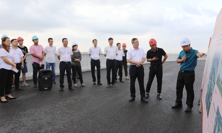 一行人先后來到路澤太三標(橋上架橋)、路澤太二標(機場樞紐)現場進行實地參觀在現場聽取了路澤太人員的情況介紹,感受到了路澤太快速路的恢弘氣勢,并為作業人員們熱火朝天的干事氛圍所感染。現場人員對路澤太公司只爭朝夕搶進度、精益求精重質量、全力以赴保通車的責任感和使命感表示高度贊賞。